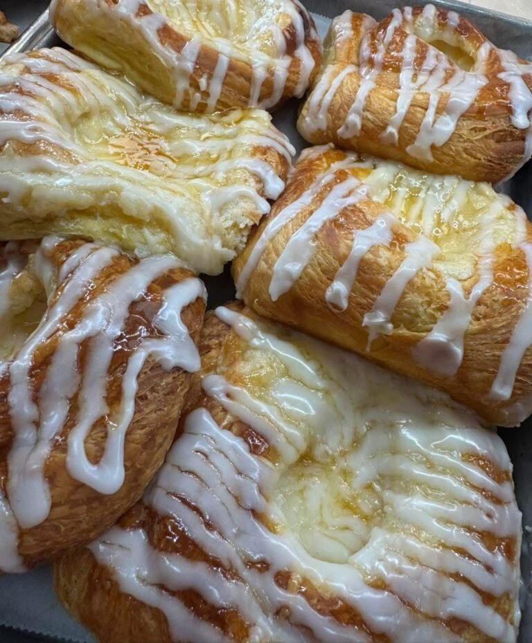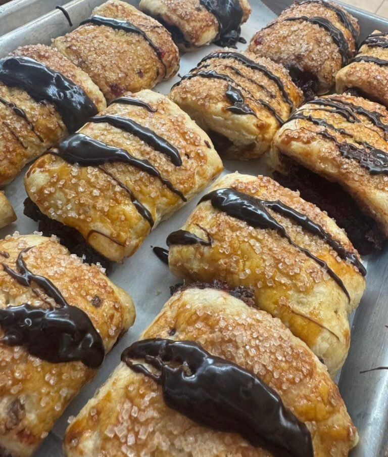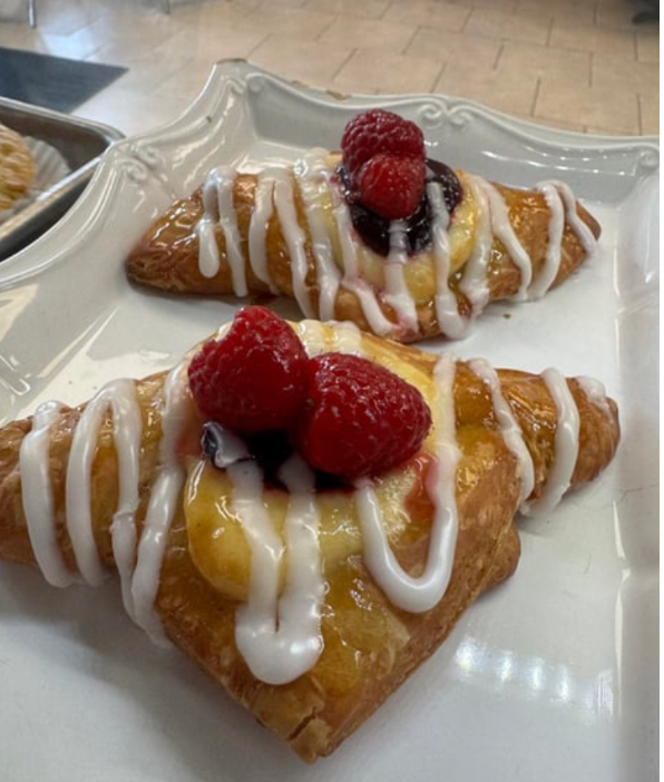 A delicate croissant filled with sweet raspberry jam and velvety cream cheese — a fruity and tangy delight
